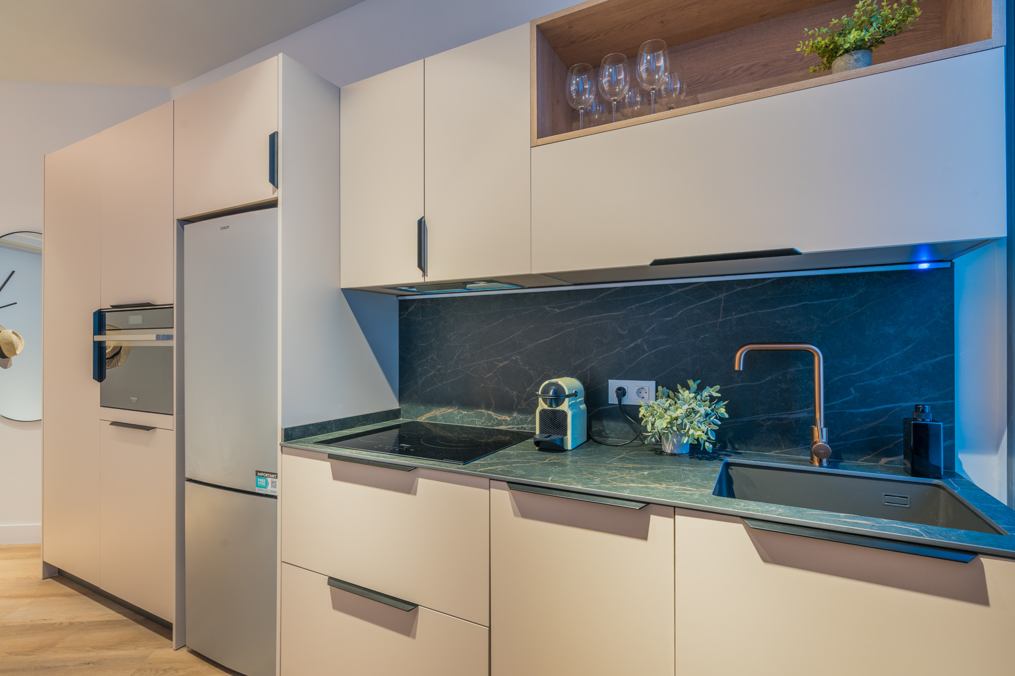 La cocina de concepto abierto, totalmente equipada, te facilitará su uso: dispone de menaje completo y electrodomésticos modernos. Además, el alojamiento cuenta con espacios bien organizados que te harán sentir como en casa desde el primer momento